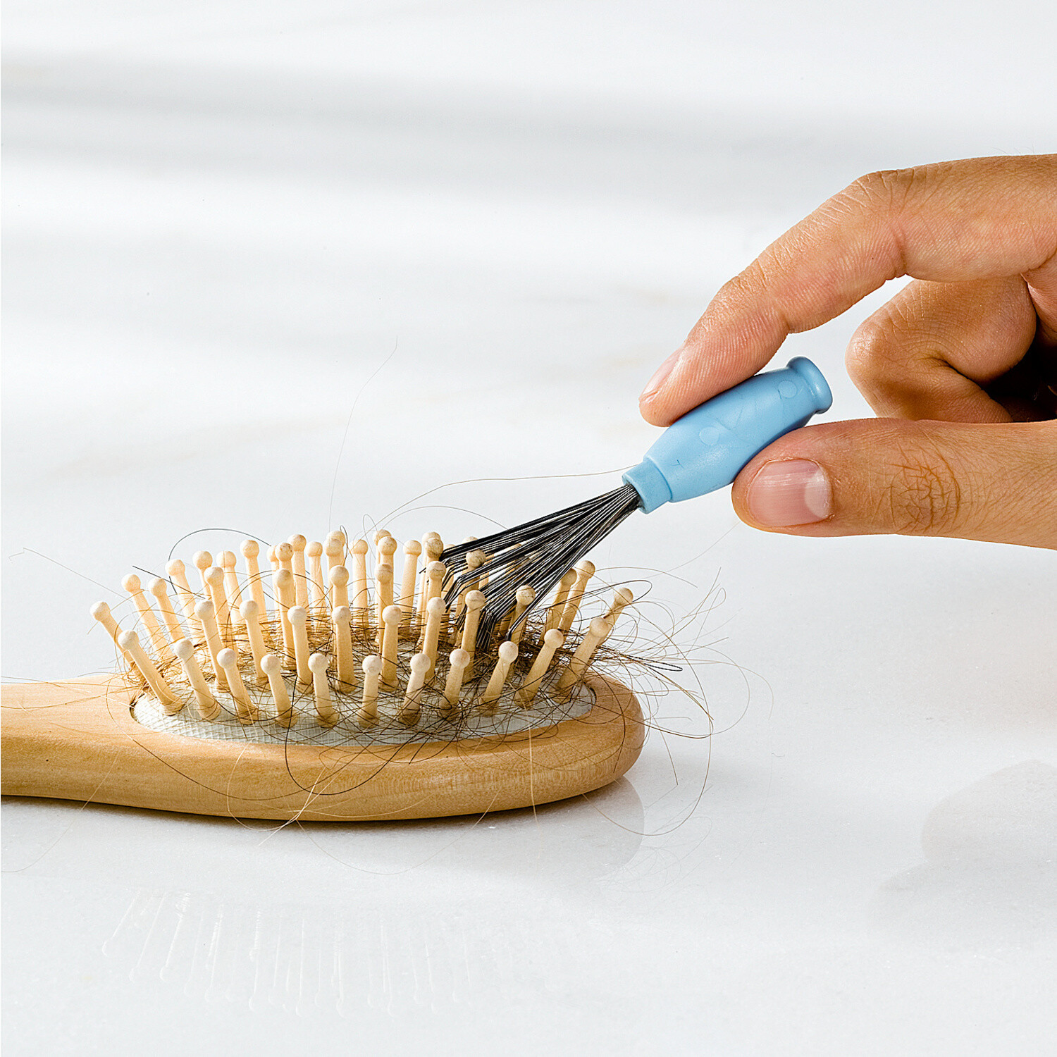 A haj és a szöszök megakadnak a finom tüskékben, így könnyen eltávolíthatók.