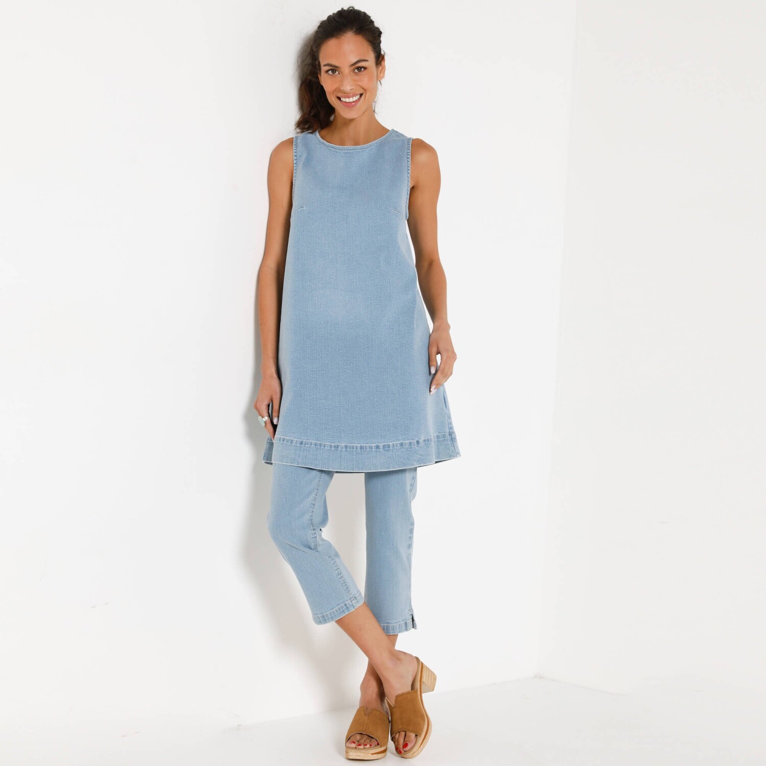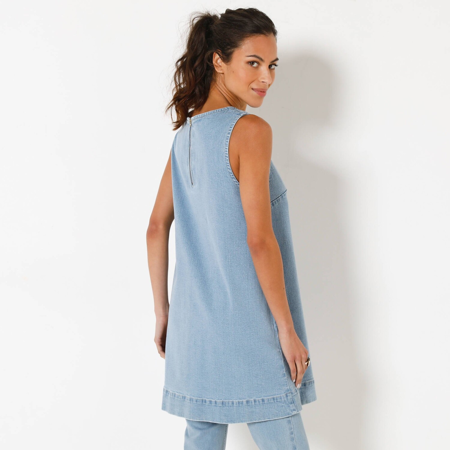 A hímzett tunika azonnal meghódította a szívünket! Tunika nyakkivágással és mély V-nyakkal. Hosszú blúzujjak. Fix mandzsetta. Széles, egyenes szegély. Mosógépben mosható.