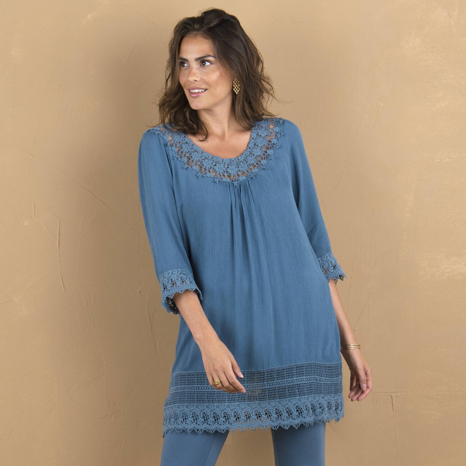 Tunika felhajtott ujjakkal és nyomtatással