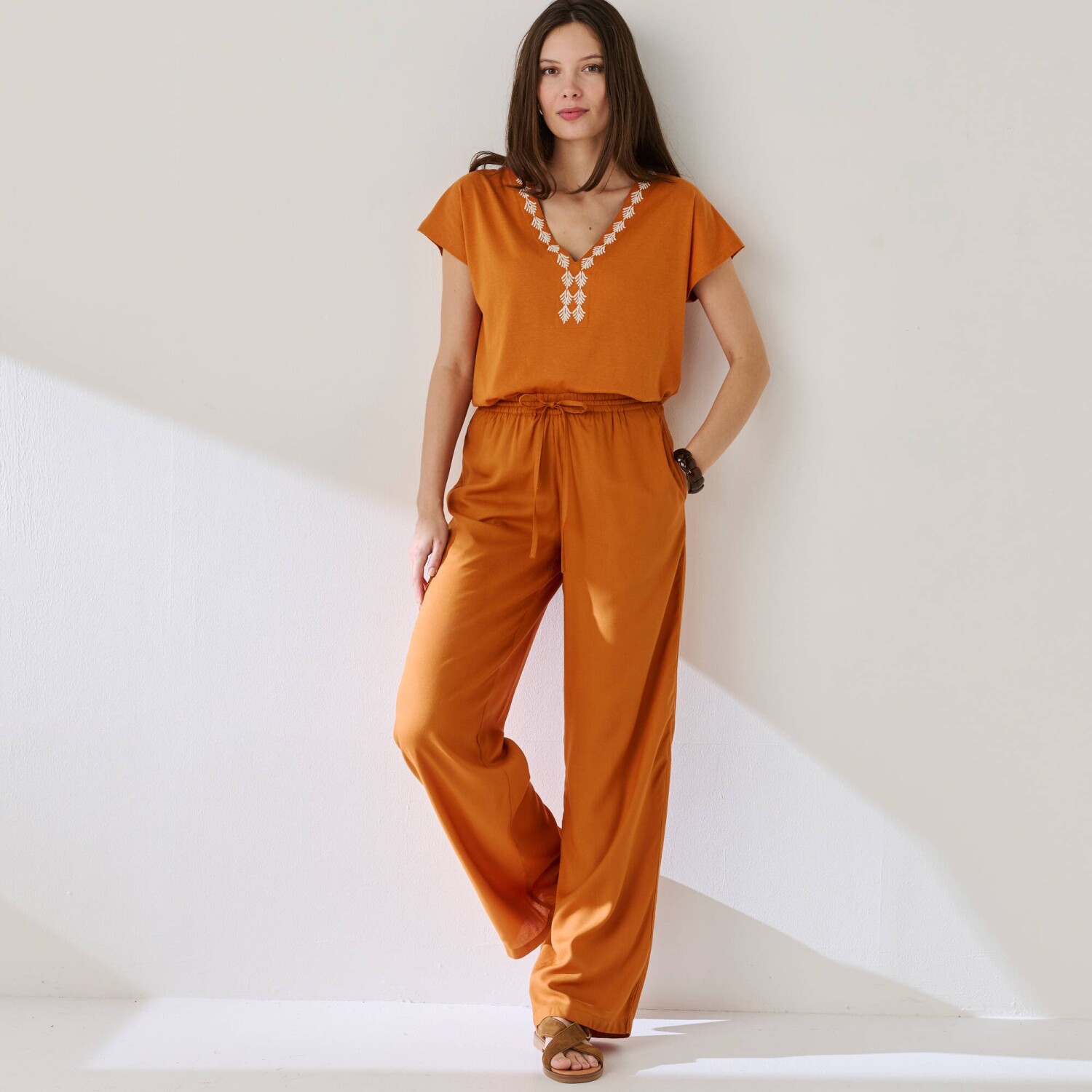 Kényelmes pamutból készült, könnyű mosással, ezek az egyenes szárú, foltzsebekkel ellátott nadrágok könnyen kombinálhatók. Az egyenes szabás minden alakot kiemel. Két foltzseb hátul, két zseb elöl. Normál derék. Testhezálló, kontúros derékrész öt övbújtatóval. Cipzáras és gombos záródás. Rugalmas twill anyag. Mosott felület. OEKO-TEX "Made in Green" tanúsítvány. Amellett, hogy több száz vegyi anyag jelenlétét igazolja, amely hozzájárul a magas szintű biztonsághoz, ez a címke garantálja a jól átgondolt gyártási elveket és az ellenőrzött társadalmi gyakorlatokat. Mosógépben mosható.