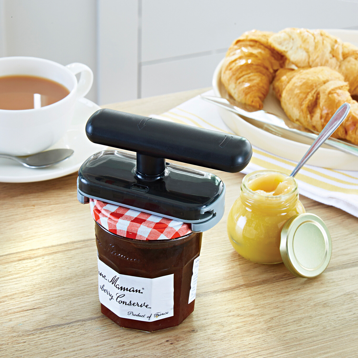 Az üvegek és befőttesüvegek kinyitása gyakran erőpróba. Ezzel az innovatív fedélkioldó mechanizmussal azonban nem az többé! Egy enyhe csavarás, és a racsnis mechanizmus minden kupakot könnyedén kiold.