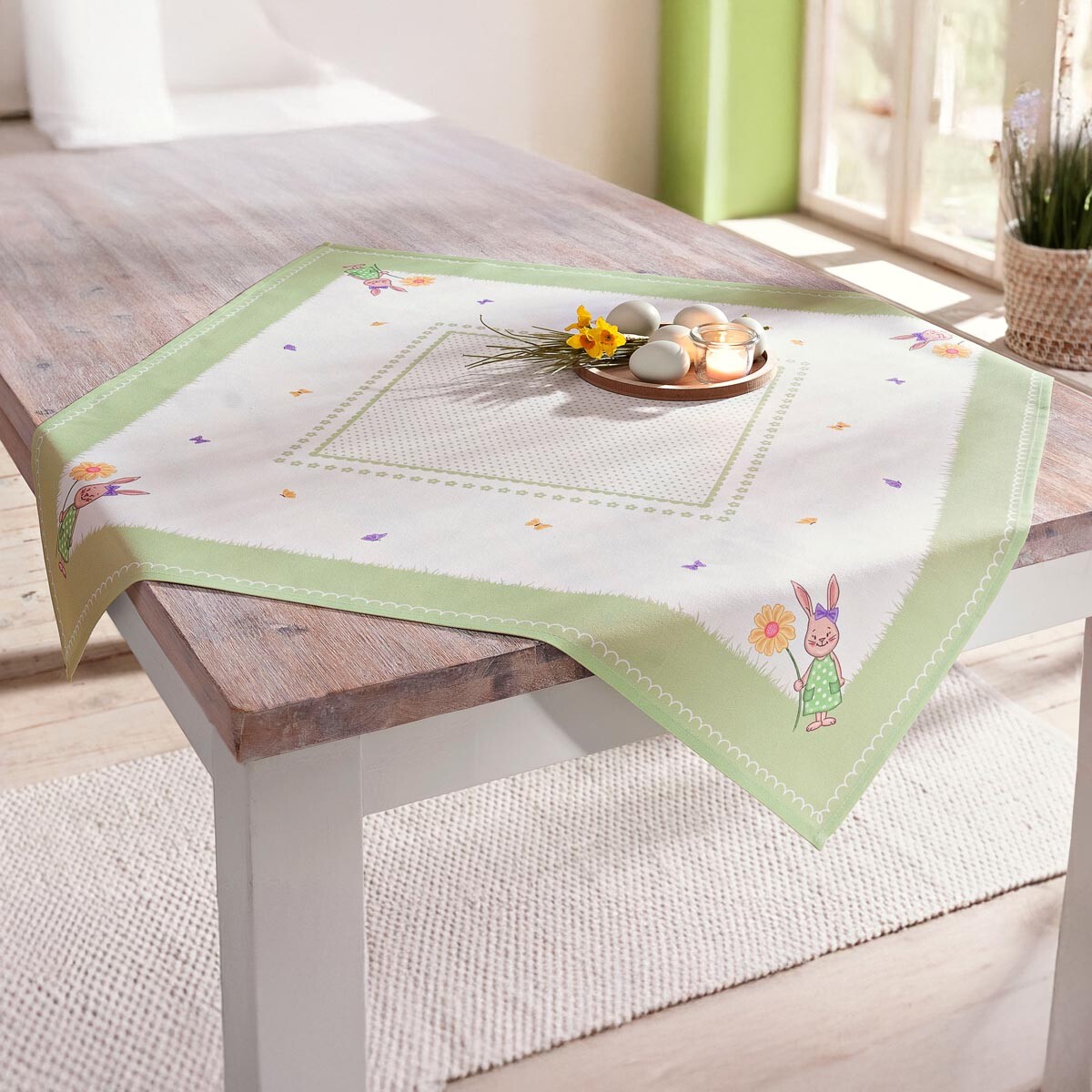 Aranyos húsvéti terítő tavaszi motívummal, pasztell színekben, amely szépen megteríti az asztalt, és tavaszi hangulatot varázsol az étkezőbe. Az egész szélén szegélyezett, könnyen karbantartható. 30 °C-on mosható. Anyag: 100% poliészter.