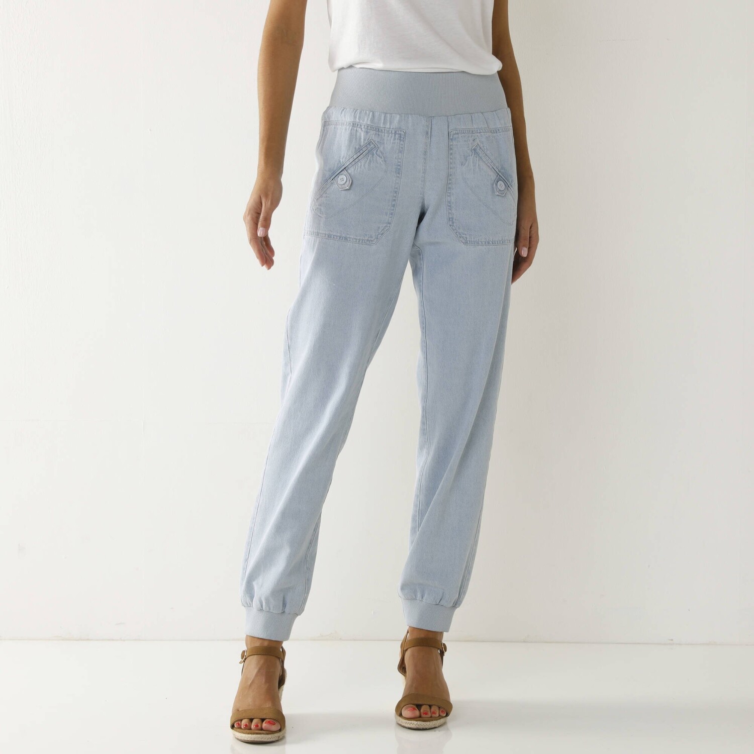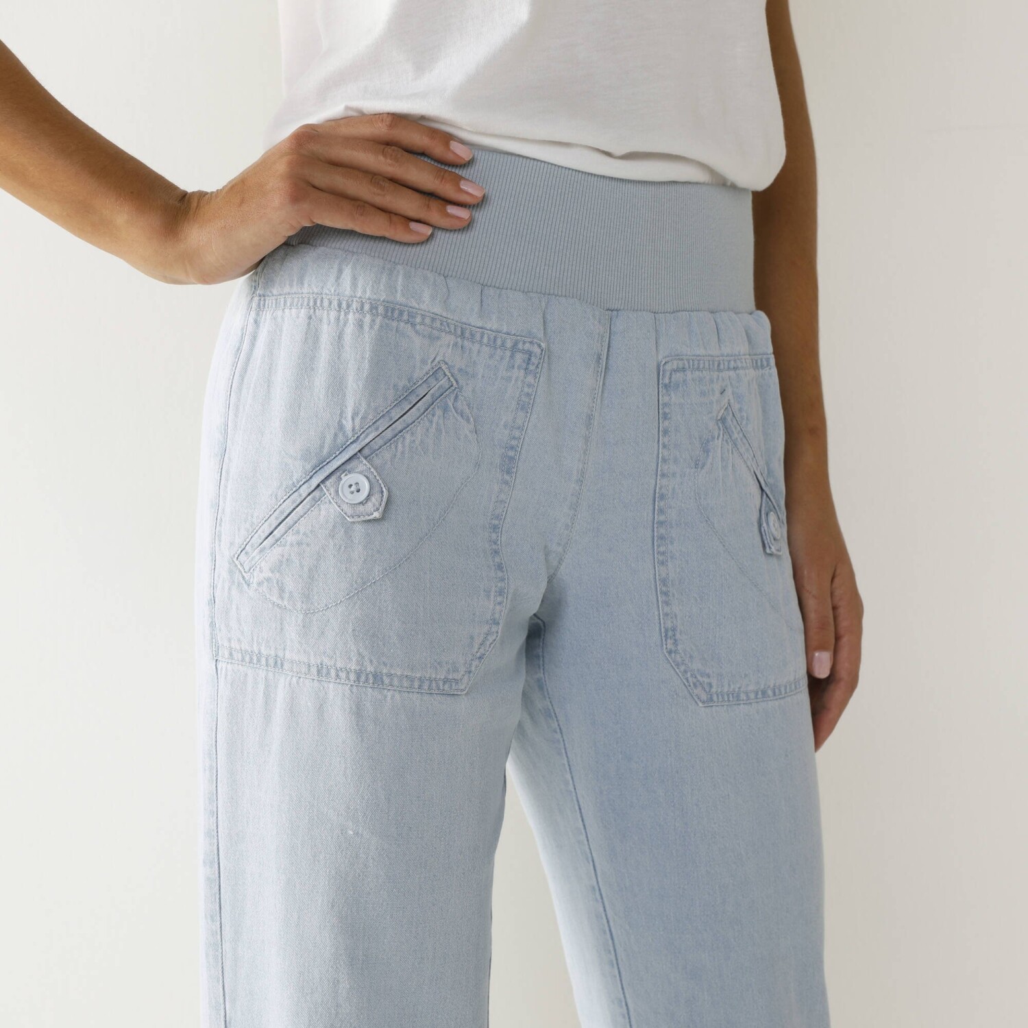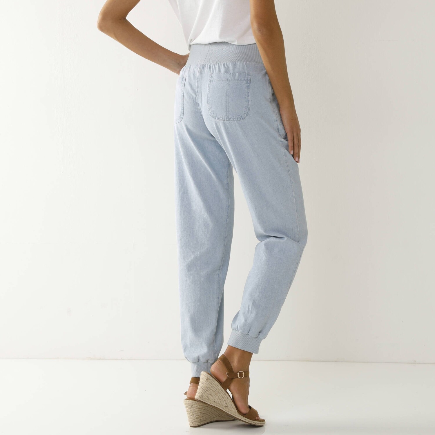 Az egyenes és légies 100% pamutból készült nadrág tökéletes nyárra. Normál derékmagasság. Karcsú, légies szabás. Széles derékpánt húzózsinórral, hátul elasztikus. Könnyű farmeranyag. Elülső szegélyzsebekkel. Az Öko-Tex 100-as szabvány szerint (n° CQ 1216 / 3 IFTH). Ez a védjegy olyan textíliákat jelöl, amelyeket laboratóriumi vizsgálatoknak vetettek alá a káros anyagok széles körére vonatkozóan, és a termék a jelenlegi szabványokon túl biztonságos. Gépben mosható.