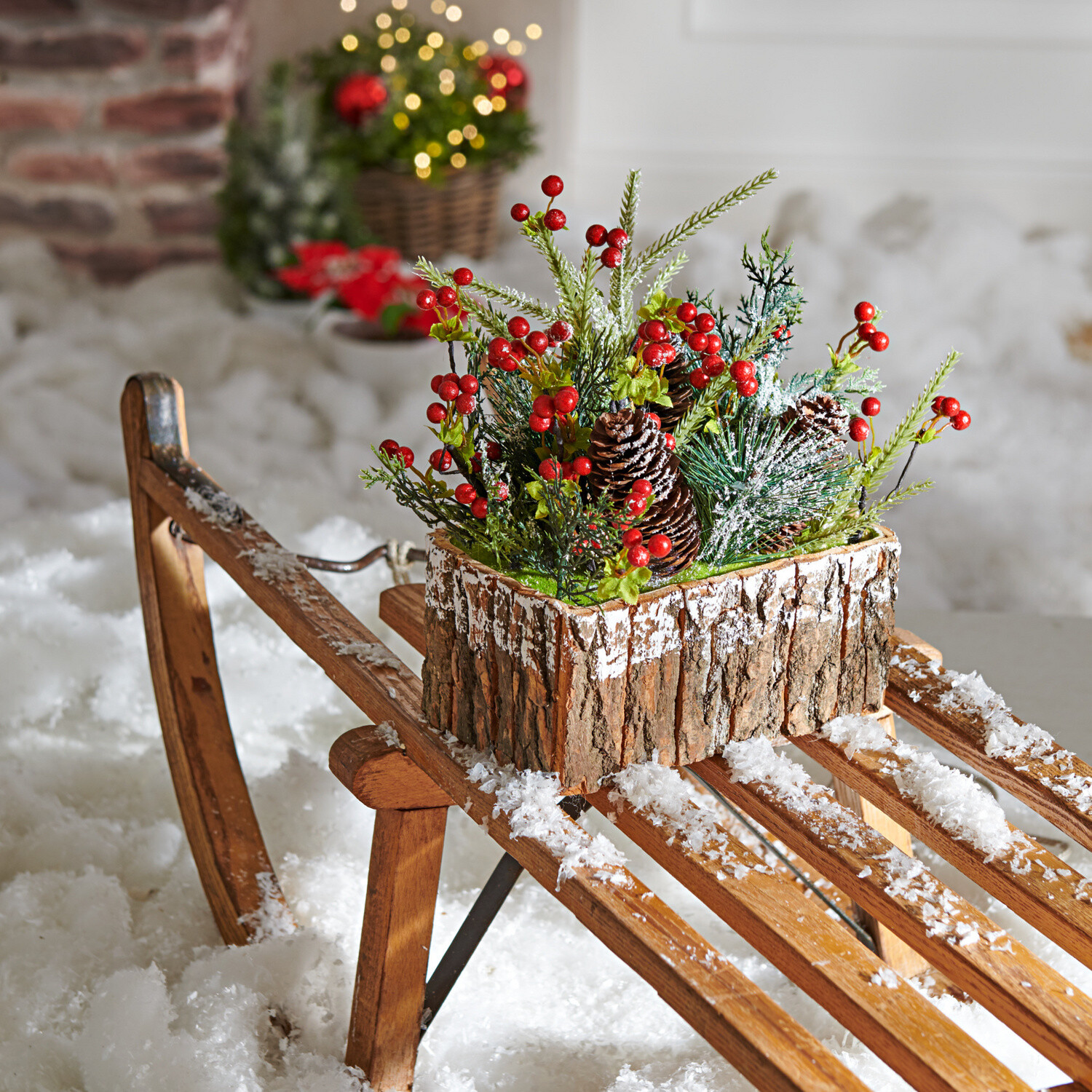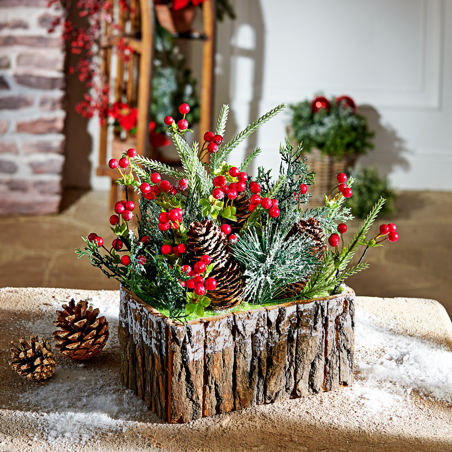 Tökéletes minden évben: gyönyörű téli összeállítás egy kosárban fenyővel, bogyókkal és valódi tobozokkal. Garantáltan semmi sem fog csöpögni vagy tűszúrni.