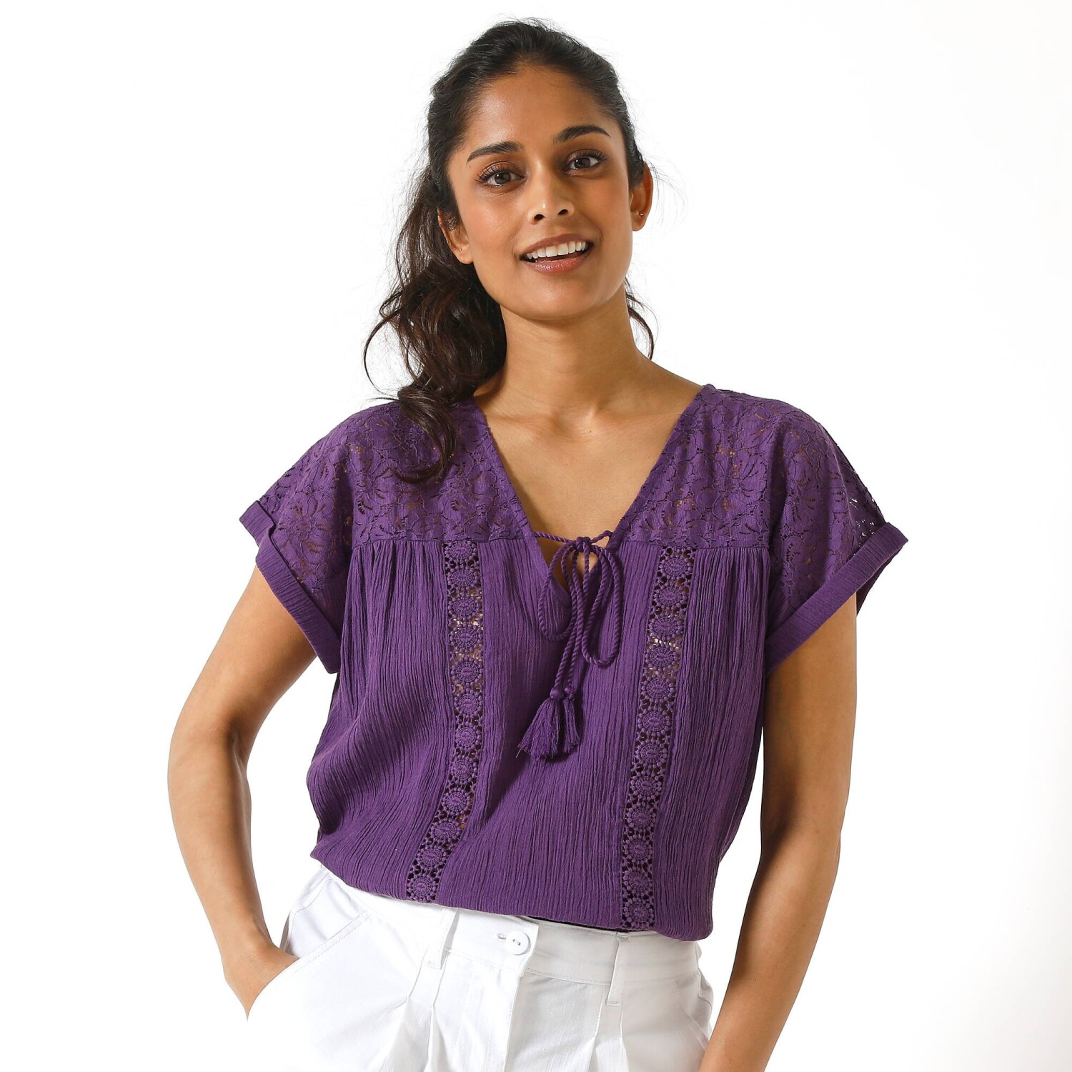 Hosszú ujjú blúz, egyszínű, horgolt részletekkel