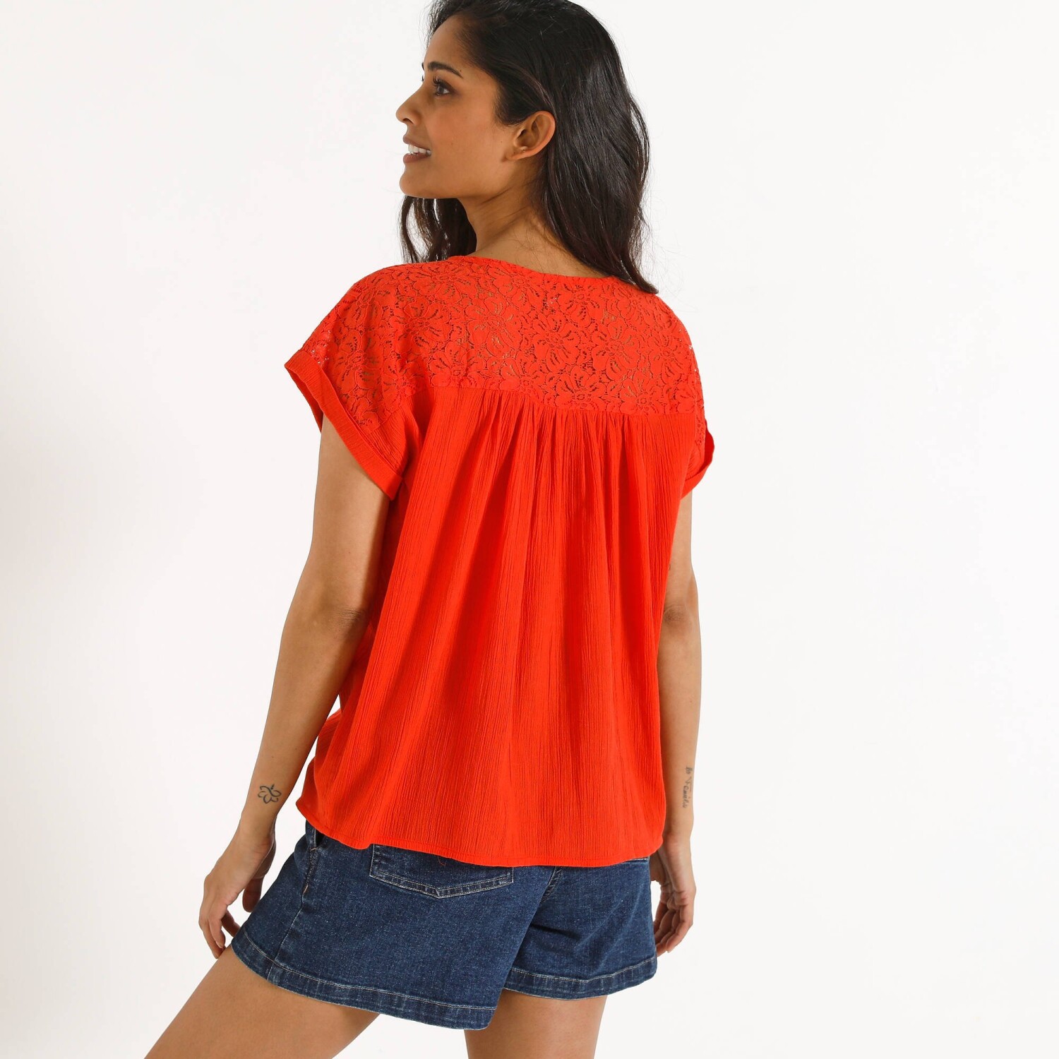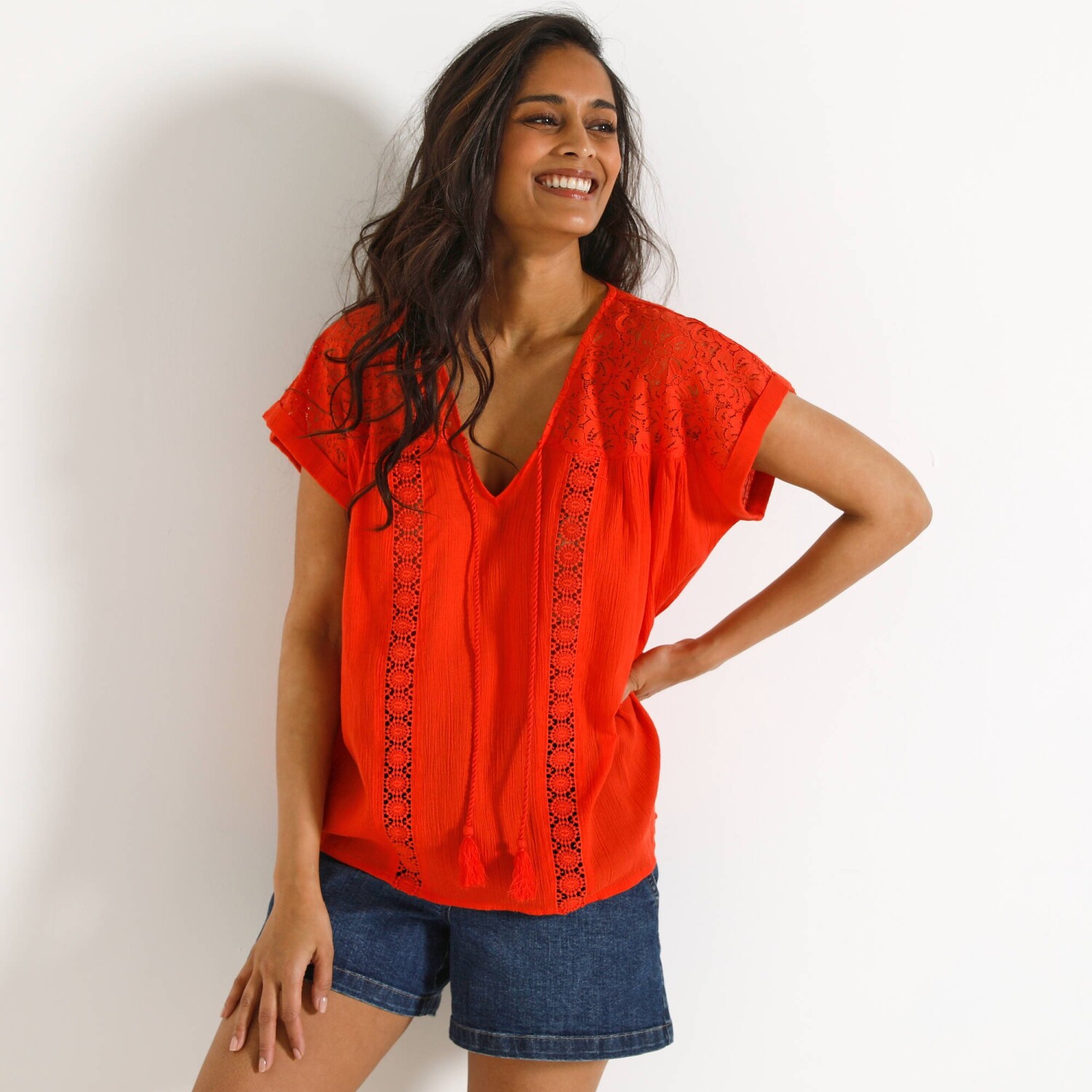 Könnyű voile, fodros részletek, fodros mandzsetta - ez az egyszínű blúz a kifinomult divatra fogad. Légies voile. Lekerekített V-nyak. Elöl gombok (fedett gombok). Elülső vállbetét fodrokkal. Mellkasi vonó. Hosszú blúz ujjak. Vállrés. Mancsok brossokkal. Enyhén lekerekített szegély. A Blancheporte újrahasznosított poliészter (1) választása hozzájárul a hulladék elleni küzdelemhez és a környezetet tiszteletben tartó, felelősségteljesebb fogyasztásra ösztönöz. Gépben mosható
