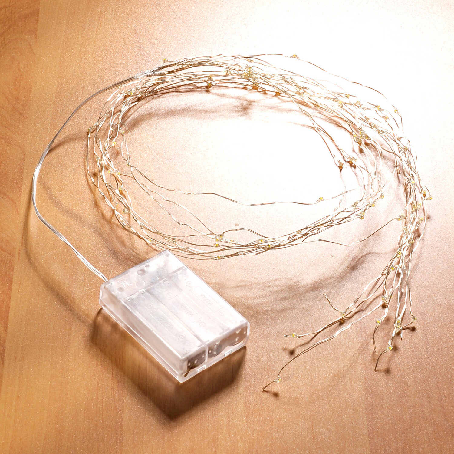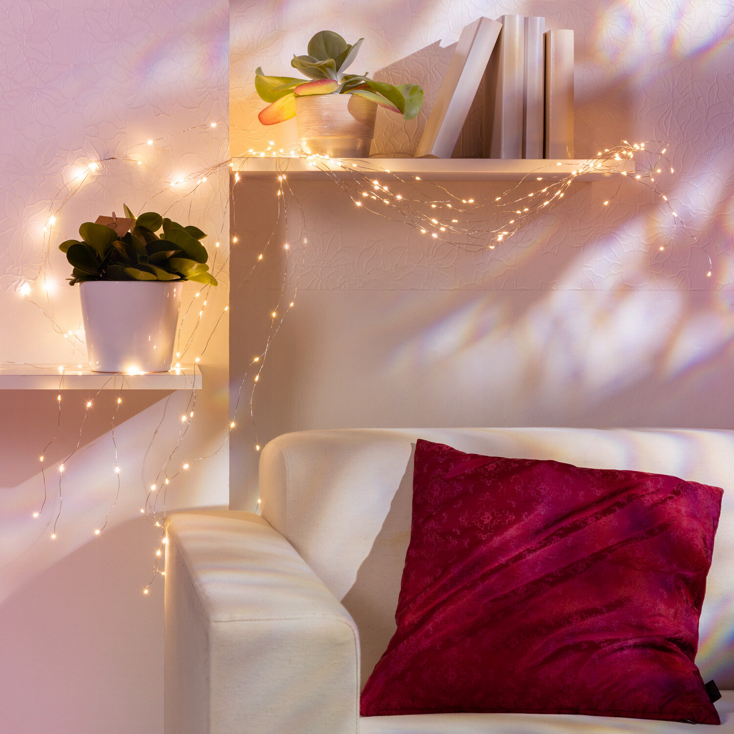 Mintha szikrázó aranyeső hullana alá - fantasztikus! Ez a 100 meleg-fehér LED-es izzóval ellátott fényfüzér ugyanolyan látványosan mutat a karácsonyfán, mint az ablakban, a szekrény szélén, vagy akár asztali díszként.