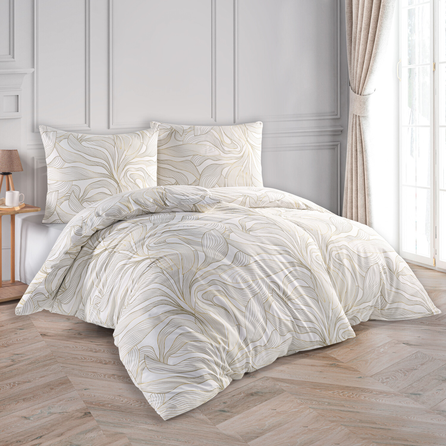 A nagy, barna virágmintákkal díszített, krémszínű alapú pamut ágynemű erős és sima renforcé pamutszövetből készült, amely puhaságáról, légáteresztő és nedvszívó tulajdonságairól ismert, így magas kényelmet biztosít alvás közben. Nagyfokú kopásállósággal rendelkezik, és ellenáll a gyakori mosásnak és a hosszú távú használatnak. Az ágynemű rendelkezik az Öeko-Tex Standard 100 minőségi tanúsítvánnyal. A szett tartalmaz egy 140 x 200 cm-es paplanhuzatot és egy 70 x 90 cm-es párnahuzatot. Cipzáros záródás. Anyag: 100% pamut.