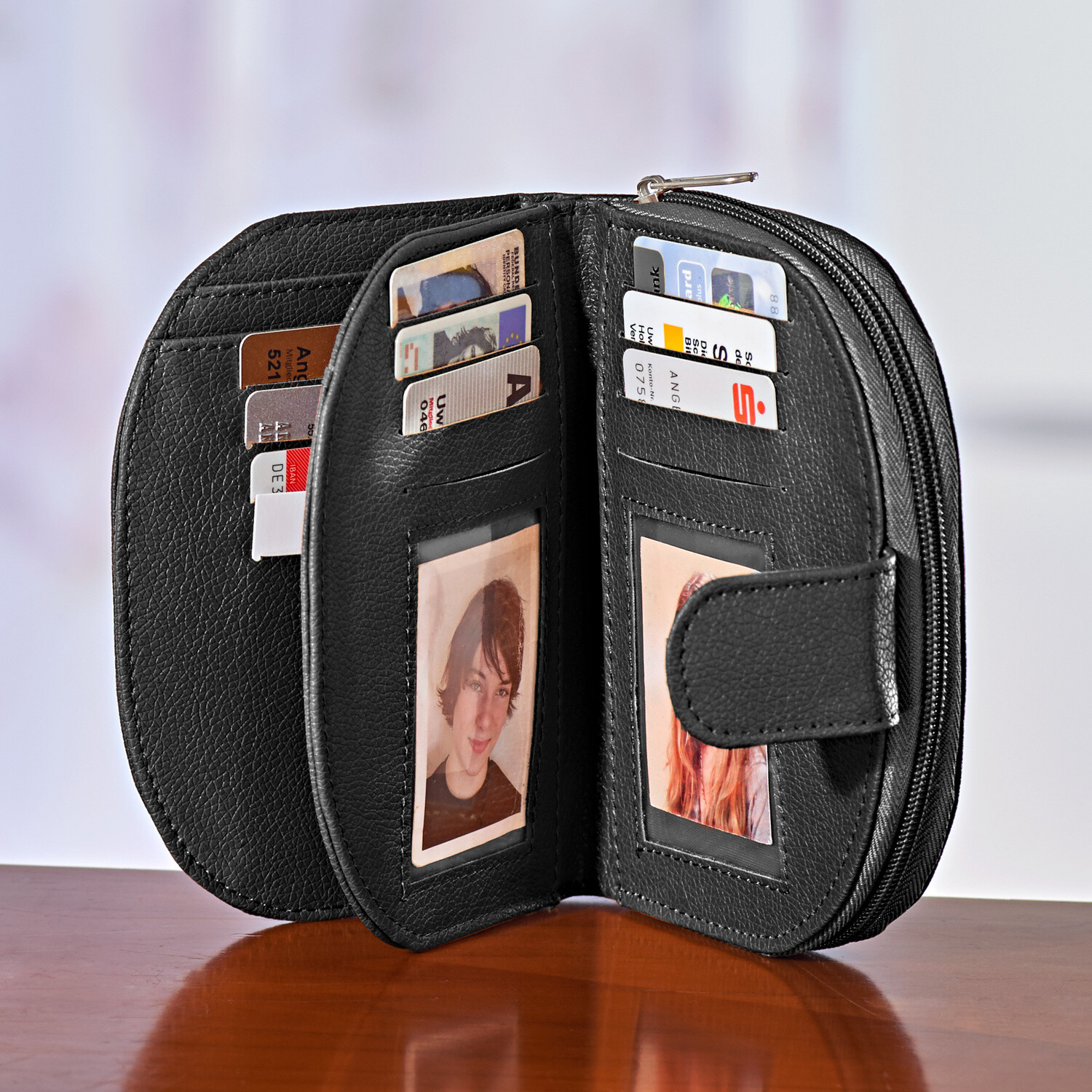 Exkluzív pénztárca dupla cipzáras érme zsebbel, sok rekesszel és átlátszó ablakkal - a "Doro" kézitáskához megfelelő.