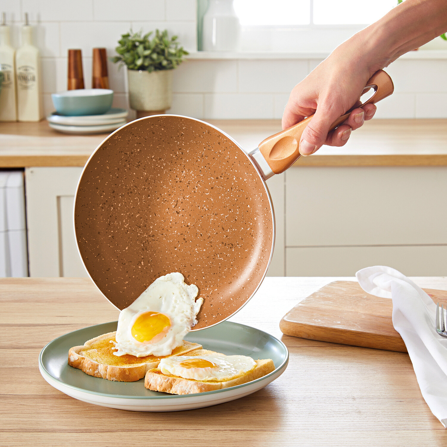 Minden Copper King serpenyő egy életre szóló befektetés: kemény, akár a gránit, karcálló és kellemesen könnyű, extra vastag tapadásmentes bevonattal - nem kell kizsírozni! Az optimális hőelosztásnak köszönhetően nemcsak kalóriát, hanem energiát és villanyáram-költséget is megtakaríthat vele. Az egészséges, zsírszegény konyha alapdarabja.