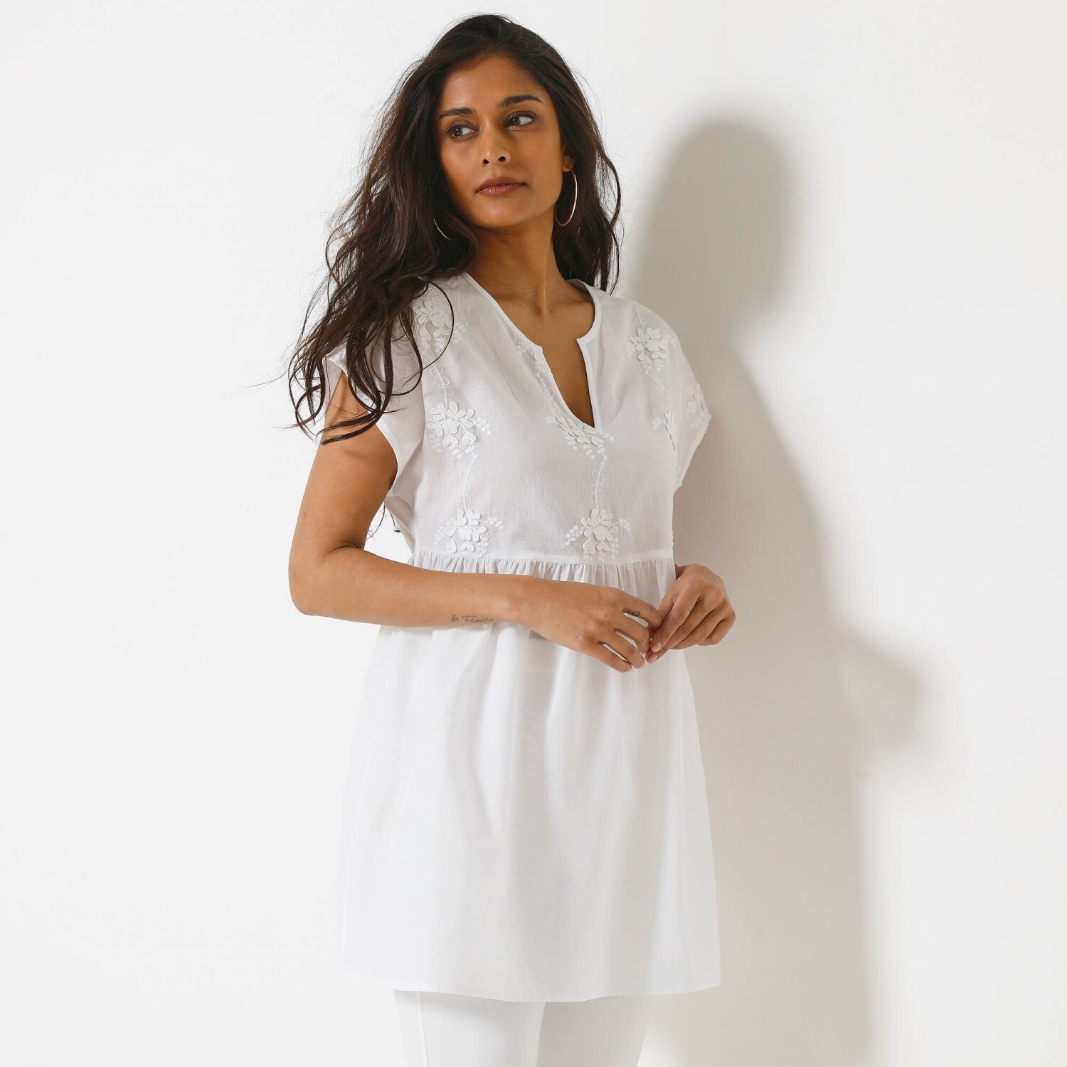 V-nyakú, fűzős tunika