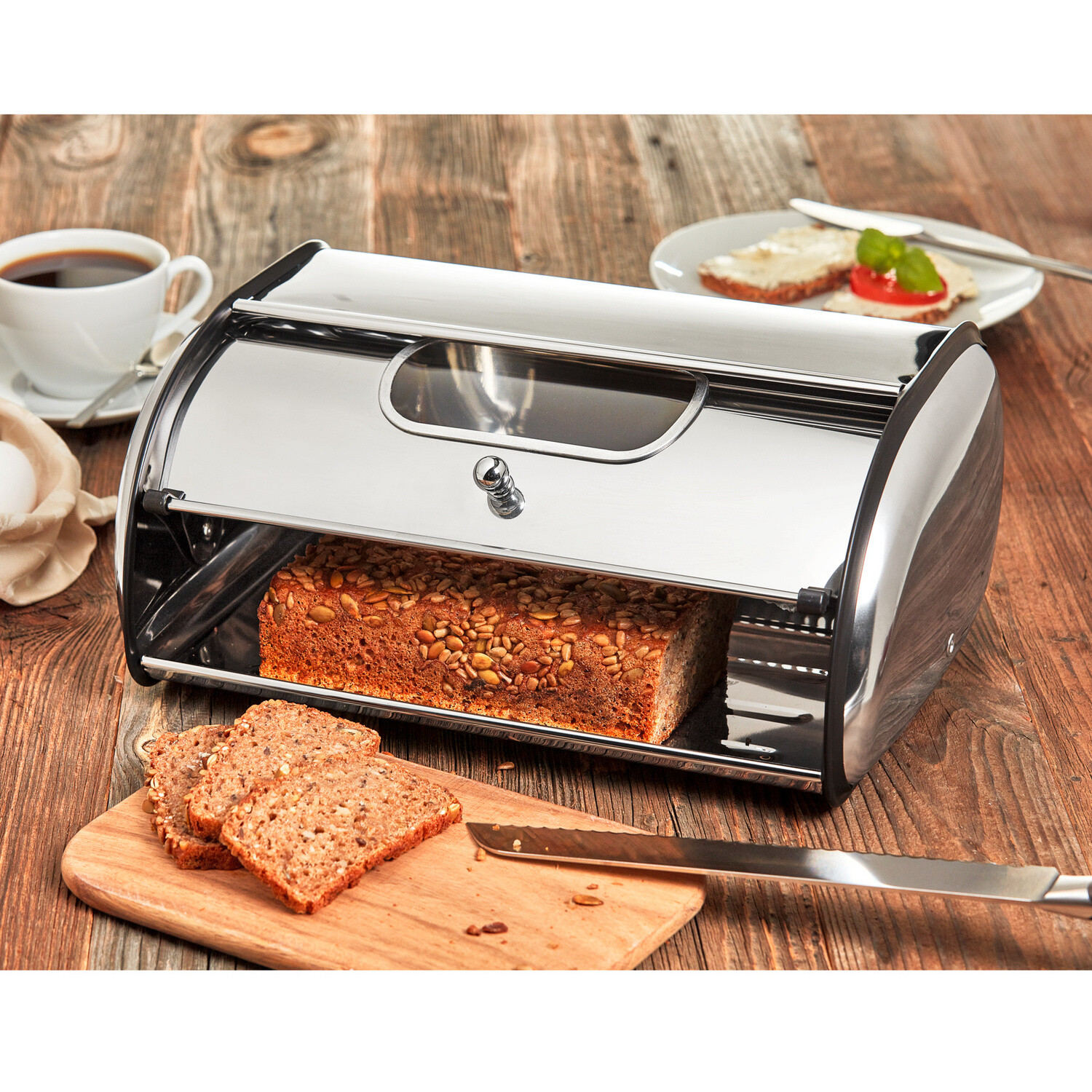 Ez az új, betekintőablakkal ellátott kenyértartó a legnagyobb frissesség biztonságát nyújtja. Barázdált aljával és a hátulján lévő szellőzőnyílásokkal az optimális légkeringés révén megőrzi a frissességet. Ez megakadályozza, hogy a kenyér és a zsemle kiszáradjon vagy penészes legyen.