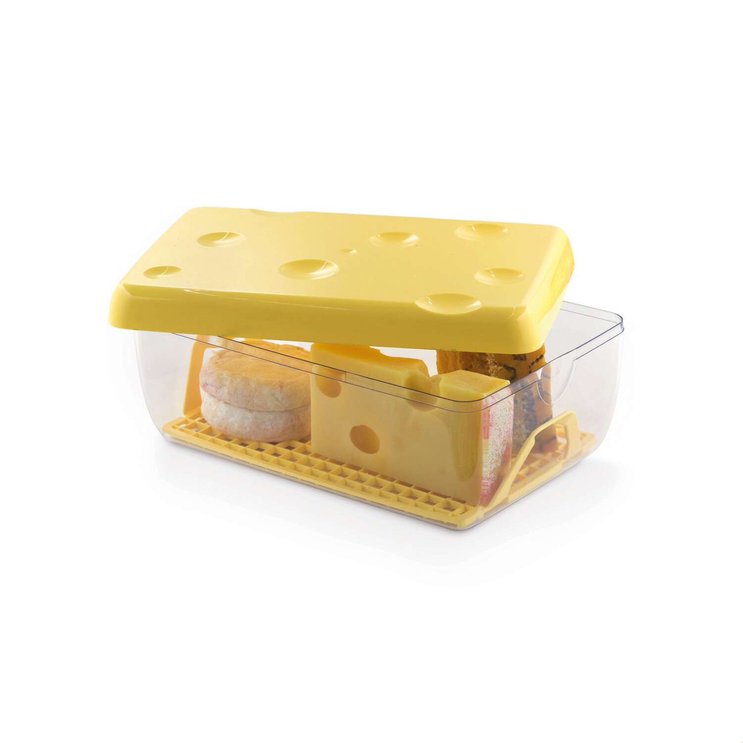Tartsa a sajtot légmentesen és higiénikusan lezárva a hűtőszekrényben: nagy méretű frissen tartó doboz, amely megakadályozza a sajtszag szivárgását és a sajt kiszáradását. Kivehető polcráccsal a nagyobb légkeringés érdekében.