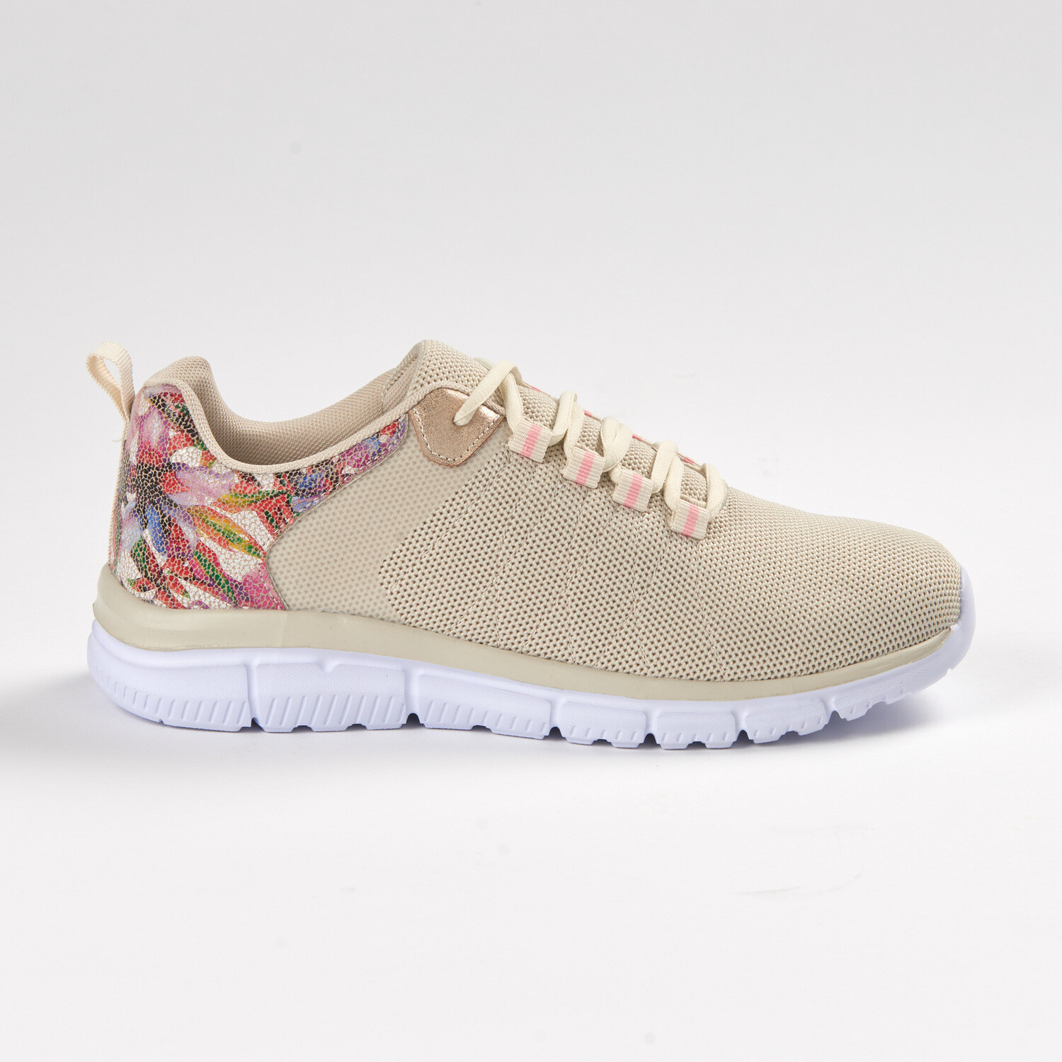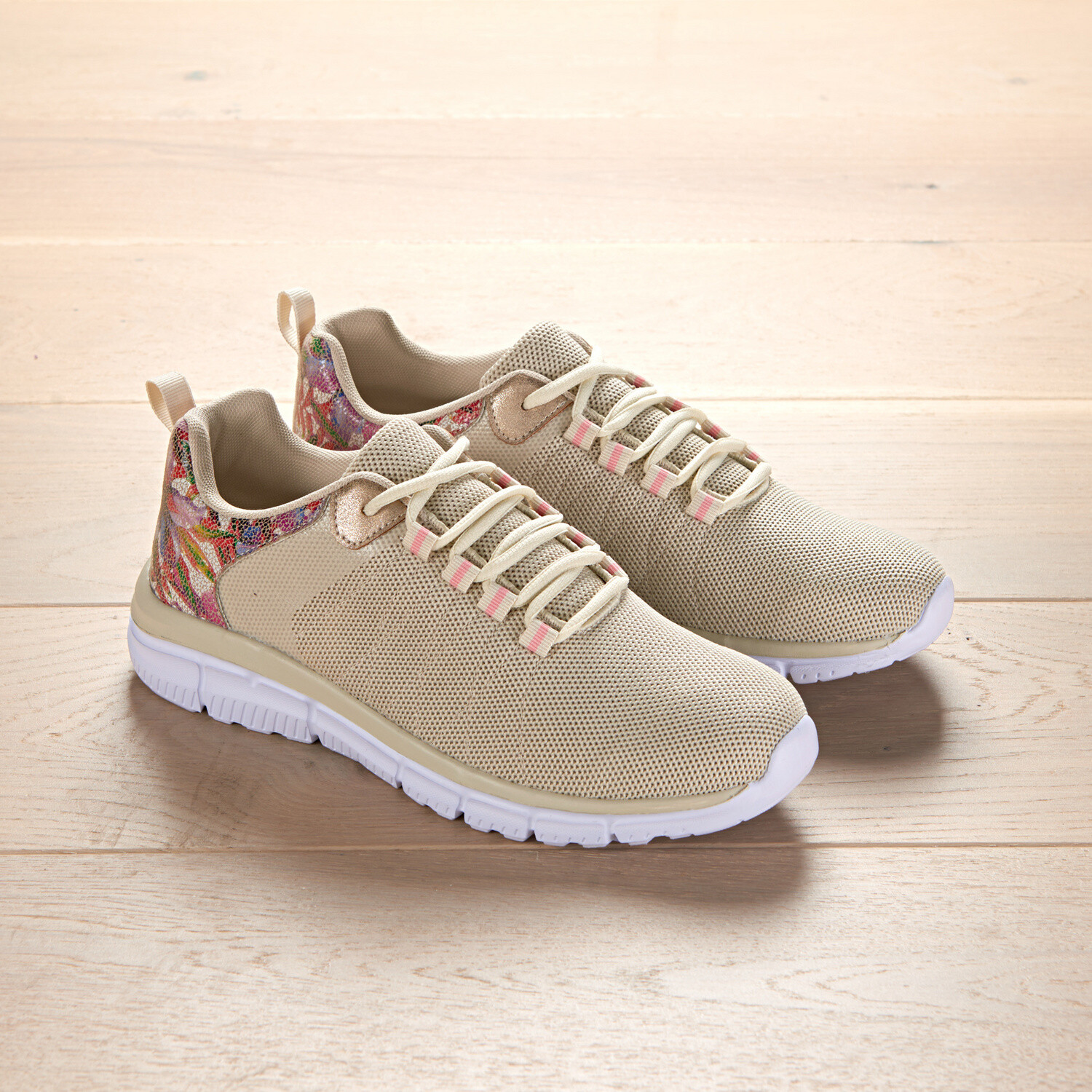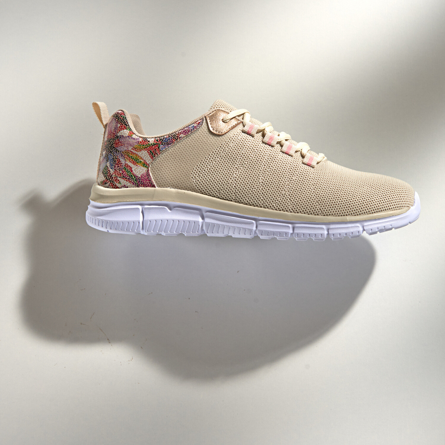 Sportos, elegáns és rugalmas! Divatos kötött megjelenéssel, virágos sarokfedéllel és díszes fűzővel ellátott edzőcipő, amely tökéletesen illik minden szabadidős öltözékhez. Rendkívül kényelmes, párnázott szárral és csúszásmentes, profilos járótalppal, amely jól elnyeli a lépések erejét.