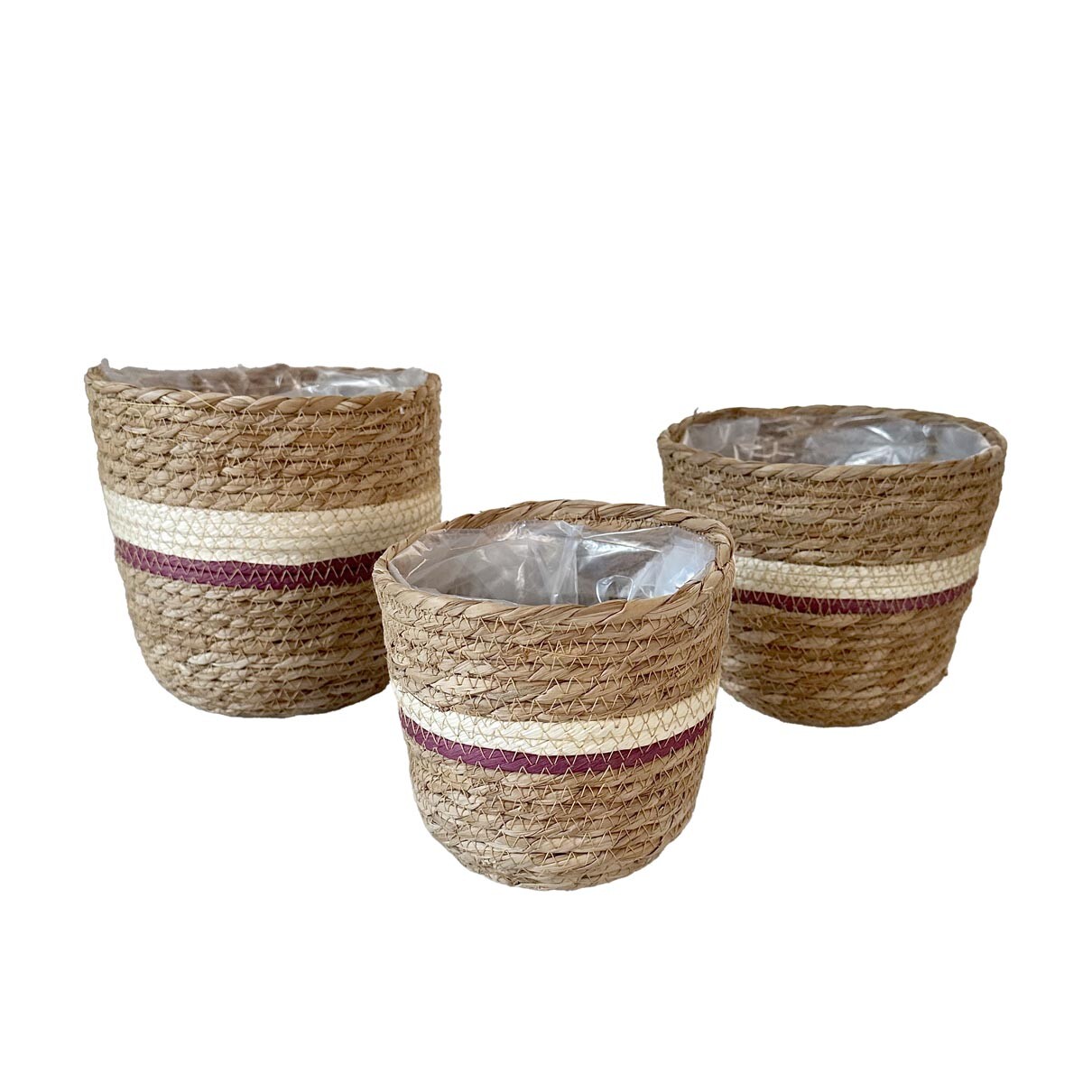 Tengerifűből készült virágcserép-tartó, 3 db-os készlet