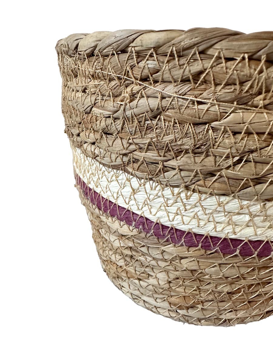 Ezek a virágcserép-tartók tökéletes kiegészítők az otthonába. A természetes anyagoknak és a színek kombinációjának köszönhetően nagyon kellemes, boho stílusú megjelenést biztosítanak. A virágkosarak gyorsan növő, tartós tengerifűből készülnek. Belsejében fólia található, amely vízállóságot biztosít a kosárnak. Anyag: tengerifű. Méretek: 20 x 20 cm, 15 x 17 cm, 13 x 14,5 cm.