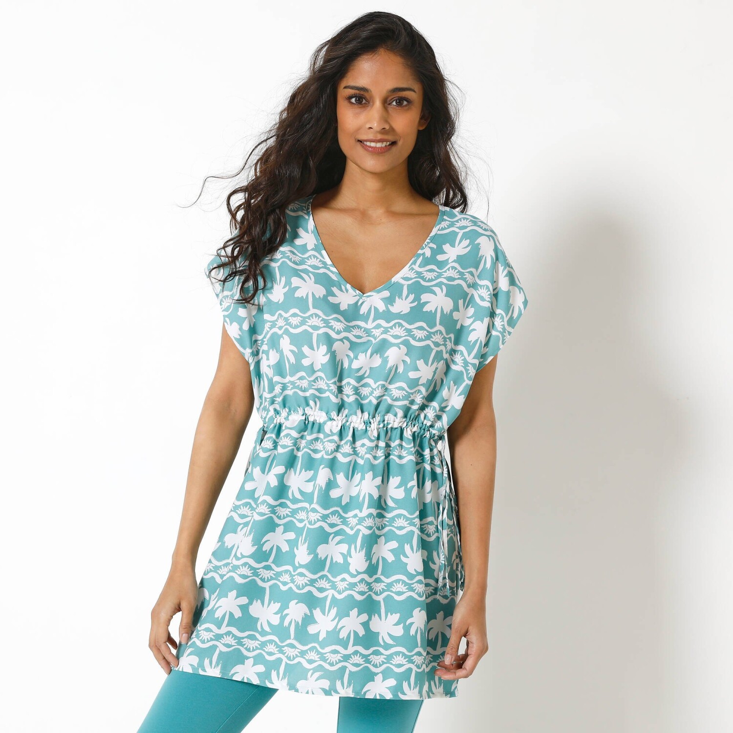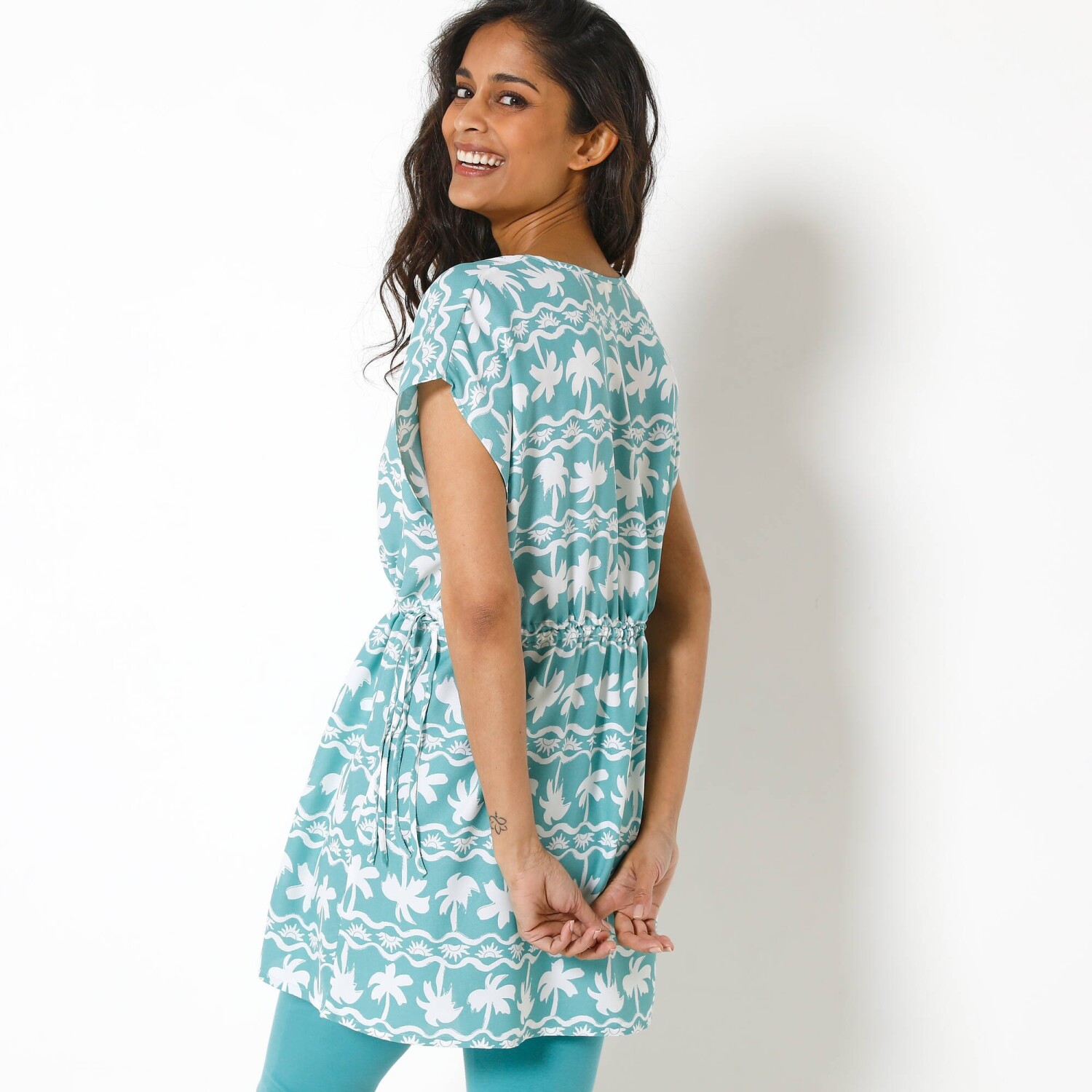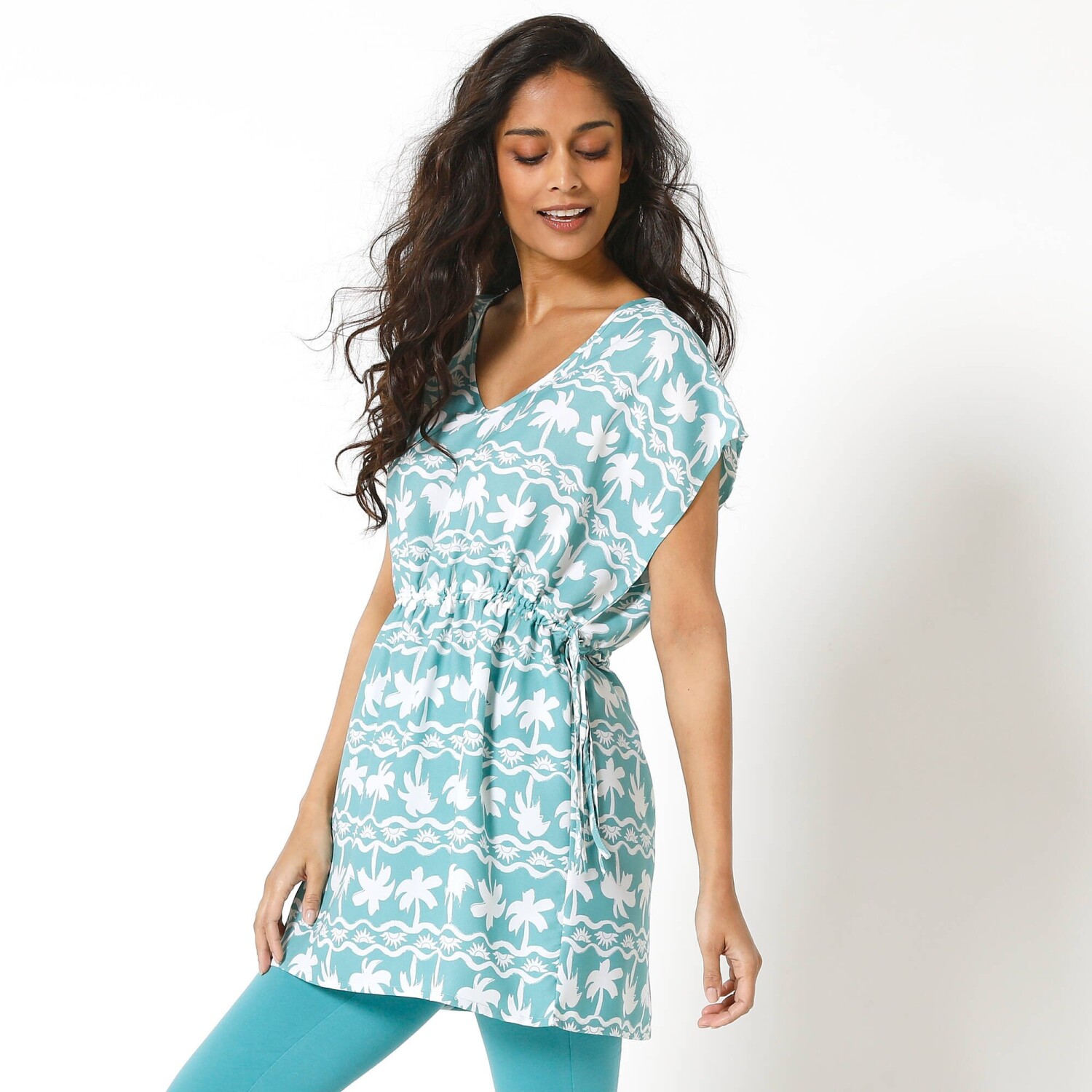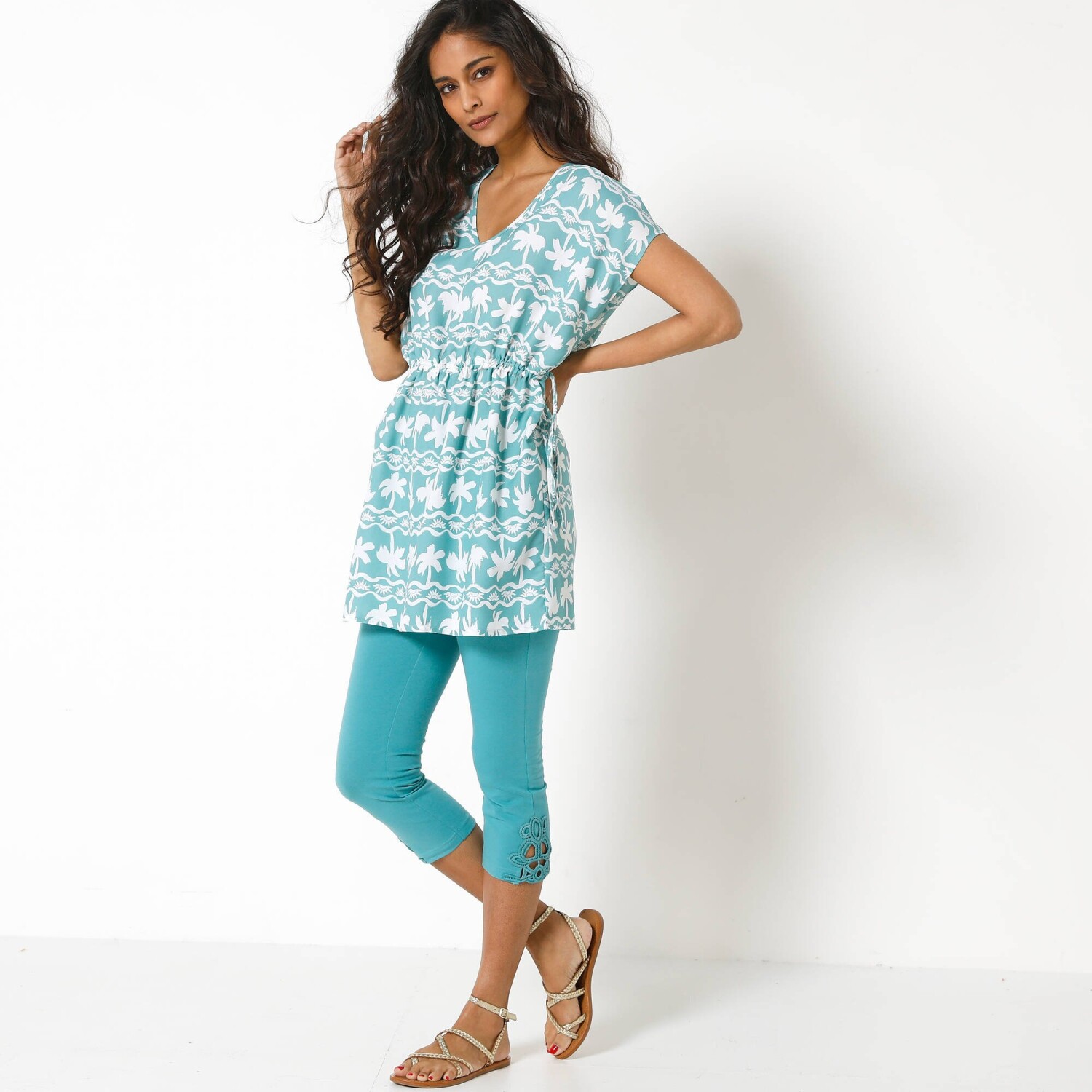 A hímzett tunika azonnal meghódította a szívünket! Tunika nyakkivágással és mély V-nyakkal. Hosszú blúzujjak. Fix mandzsetta. Széles, egyenes szegély. Mosógépben mosható.