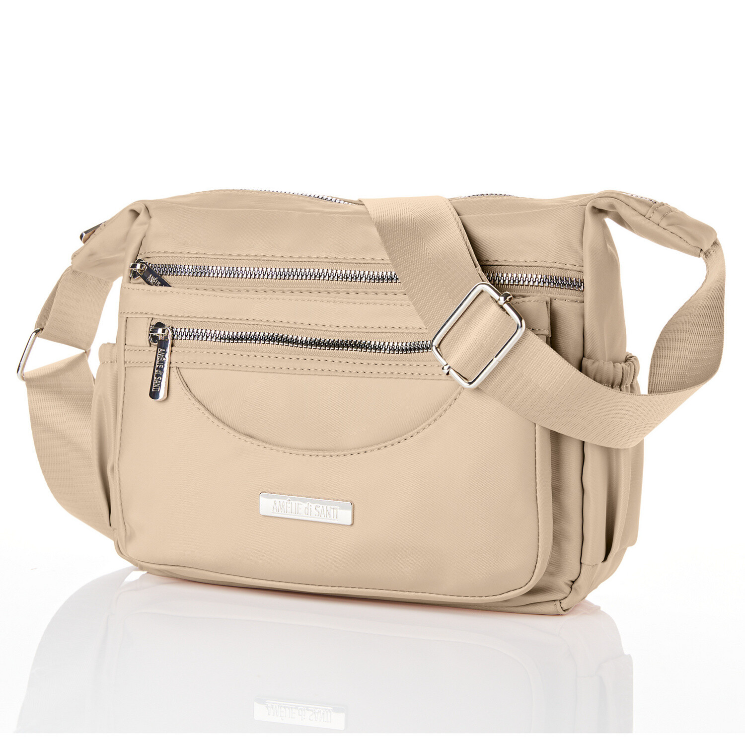 Stílusos, kompakt táska, amelybe sok minden belefér - RFID-védelemmel és vágásálló, dróttal megerősített vállpánttal. Három cipzáras rekesz a használati tárgyak számára. Az első rekesz karabineres cipzárja becsapja a tolvajokat. Lazán vállon, azon átvetve, vagy elöl hordható.