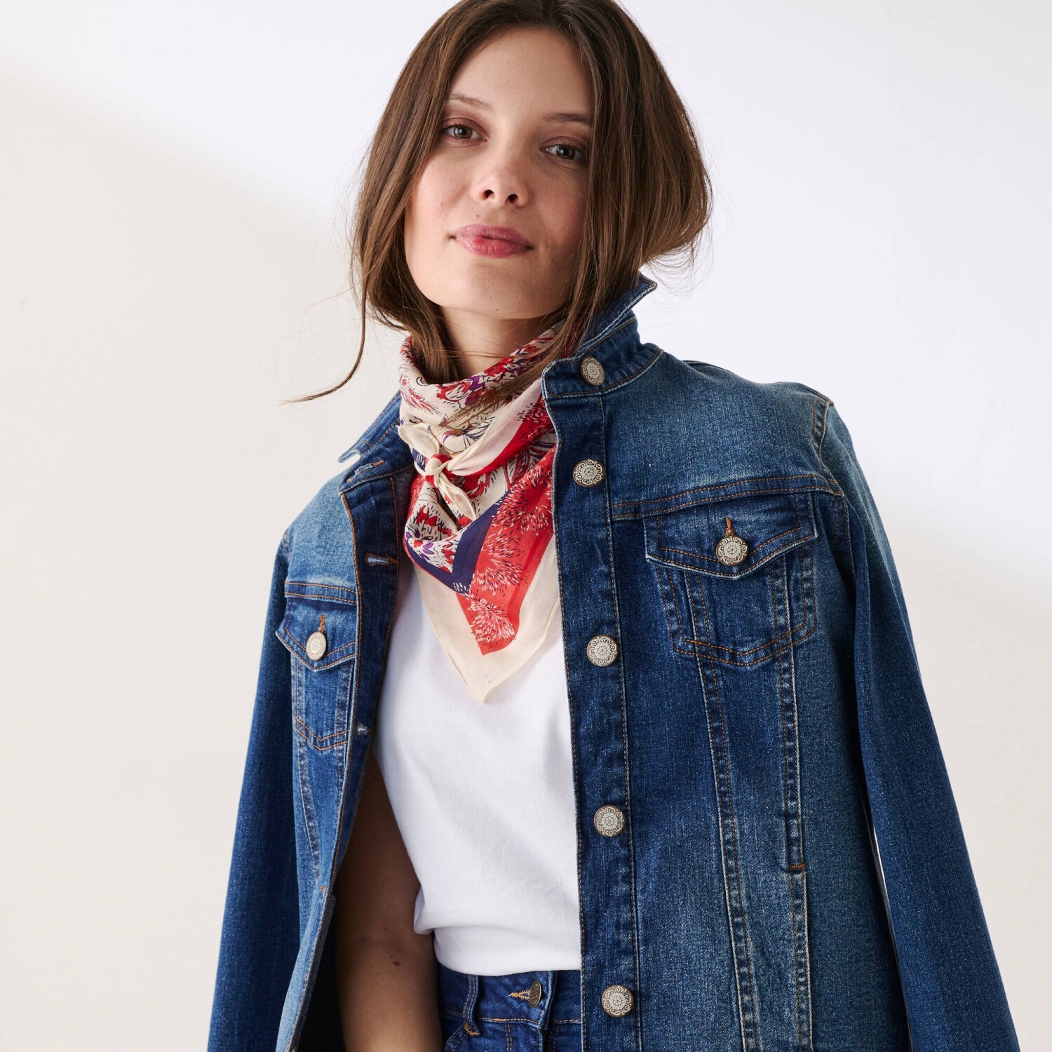 Elegáns nyári sál horgonymintával. Könnyű és puha anyag. Méret: 70x180cm. Anyag: 35% viszkóz, 65% poliészter.