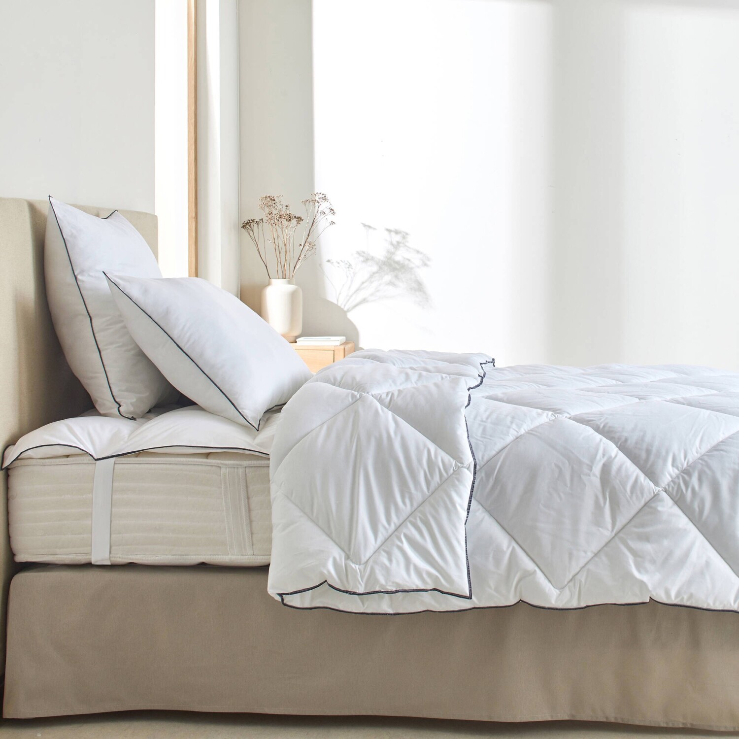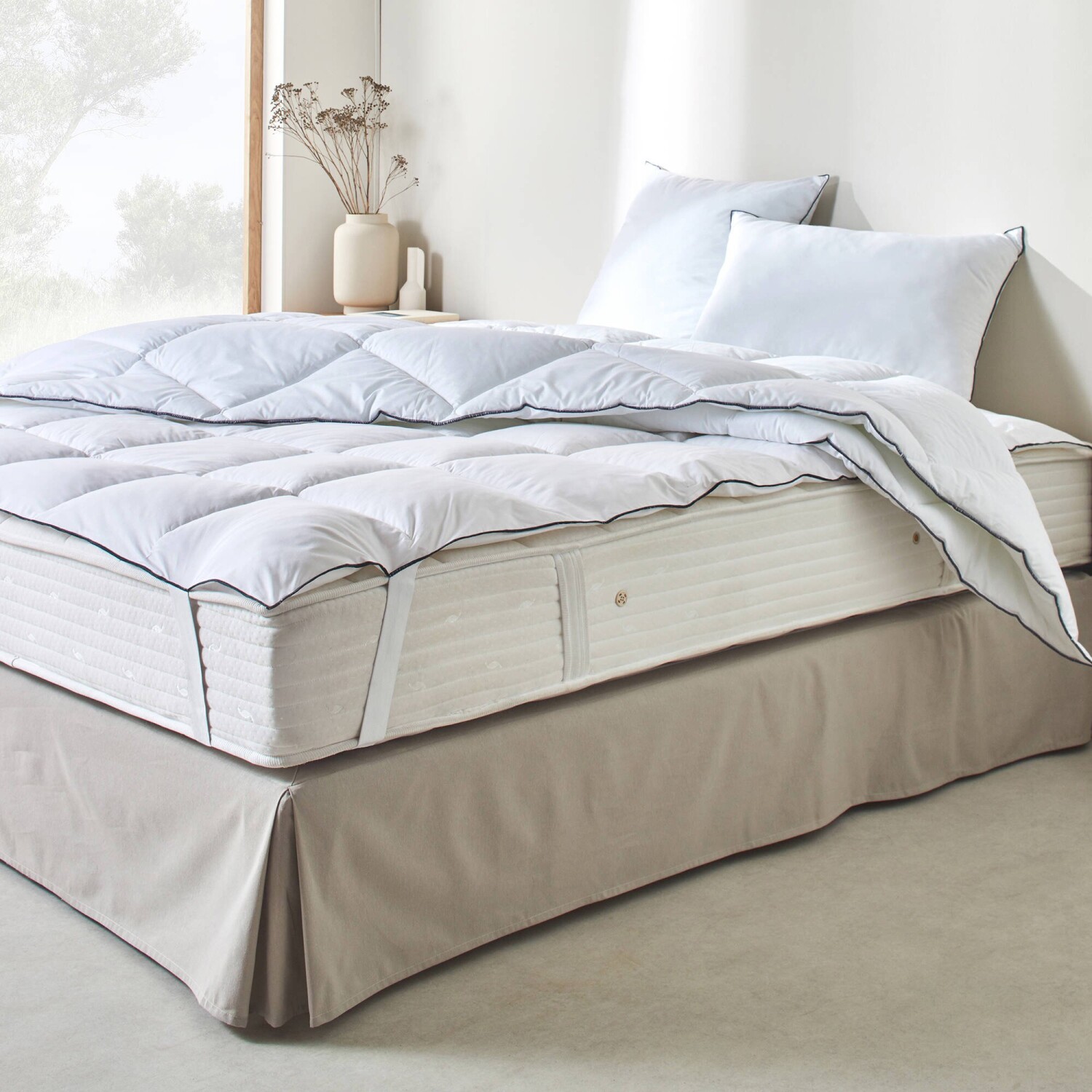 szilikon üreges szálas töltettel ellátott matracvédő extra puhaságot és abszolút kényelmet biztosít. Ideális a túl kemény vagy elhasználódott matrac újjáélesztéséhez és a minőségi alváshoz. "Intemporelle" kollekció. Franciaországban készült huzat. Négyzet alakú varrás a töltet tökéletes eloszlásáért. Sűrű üreges szilikon szálak szigetelő tulajdonságokkal és kivételes puhasággal. Rugalmas szalagok a 4 sarokban a matrac helyén tartásához. A Blancheporte újrahasznosított poliésztert választott, ezzel is hozzájárulva a hulladék elleni küzdelemhez és a környezetbarátabb fogyasztás népszerűsítéséhez. 100-as szabvány az Oeko-Tex szerint (n° CQ 1216 / 1 IFTH). Ez a jelölés olyan textiltermékeket azonosít, amelyeket laboratóriumi vizsgálatoknak vetettek alá számos káros anyag szempontjából, és a termék a hatályos szabványokon túl is biztonságos. 40 °C-on mosható.